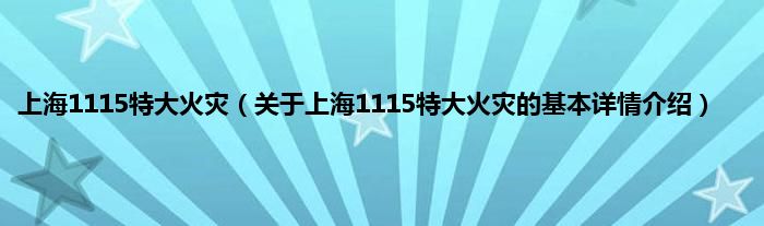 本文关于上海1115特大火灾的基本详情介绍就讲解完毕,希望对大家有所帮助。