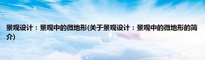 本文关于景观设计:景观中的微地形的简介就讲解完毕,希望对大家有所帮助。
