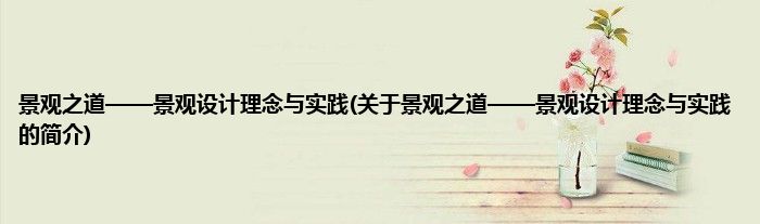 本文关于景观之道——景观设计理念与实践的简介就讲解完毕,希望对大家有所帮助。