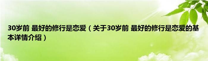 本文关于30岁前 最好的修行是恋爱的基本详情介绍就讲解完毕,希望对大家有所帮助。