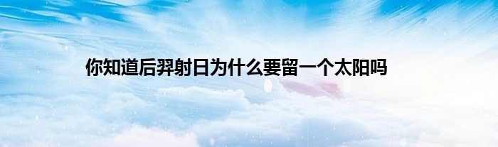 以上就是【你知道后羿射日为什么要留一个太阳吗】相关内容。