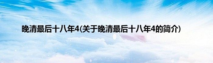 本文关于晚清最后十八年4的简介就讲解完毕,希望对大家有所帮助。
