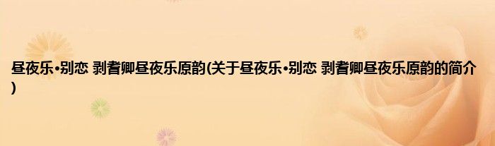 本文关于昼夜乐·别恋,剥耆卿昼夜乐原韵的简介就讲解完毕,希望对大家有所帮助。