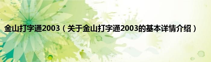 本文关于金山打字通2003的基本详情介绍就讲解完毕,希望对大家有所帮助。