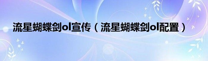大家好,小问来为大家解答以上问题。流星蝴蝶剑ol宣传,流星蝴蝶剑ol配置这个很多人还不知道,现在让我们一起来看看吧!