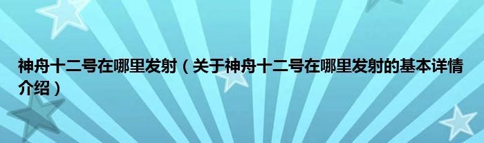 本文关于神舟十二号在哪里发射的基本详情介绍就讲解完毕,希望对大家有所帮助。