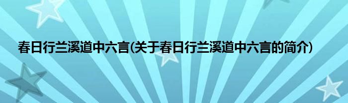 本文关于春日行兰溪道中六言的简介就讲解完毕,希望对大家有所帮助。
