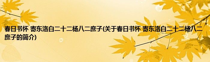 本文关于春日书怀,寄东洛白二十二杨八二庶子的简介就讲解完毕,希望对大家有所帮助。