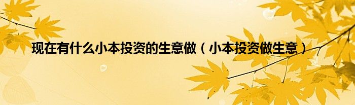大家好,小问来为大家解答以上问题。现在有什么小本投资的生意做,小本投资做生意这个很多人还不知道,现在让我们一起来看看吧!