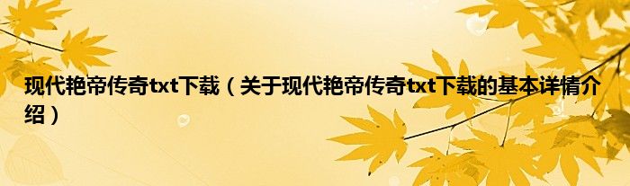 本文关于现代艳帝传奇txt下载的基本详情介绍就讲解完毕,希望对大家有所帮助。