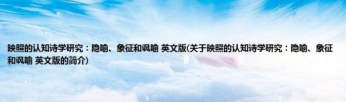 1、 《映照的认知诗学研究:隐喻、象征和讽喻(英文版)》是2018年12月1日社会科学文献出版社出版的图书,作者是朱瑞青。
