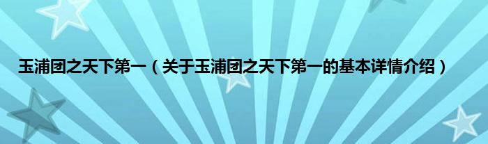 本文关于玉浦团之天下第一的基本详情介绍就讲解完毕,希望对大家有所帮助。