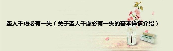 本文关于圣人千虑必有一失的基本详情介绍就讲解完毕,希望对大家有所帮助。