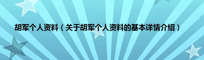 本文关于胡军个人资料的基本详情介绍就讲解完毕,希望对大家有所帮助。