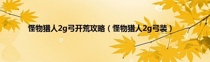 以上就是【怪物猎人2g弓开荒攻略,怪物猎人2g弓装】相关内容。