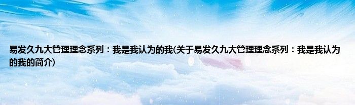 大家好,易发久九大管理理念系列:我是我认为的我,关于易发久九大管理理念系列:我是我认为的我的简介很多人还不知道,现在让我们一起来看看吧!