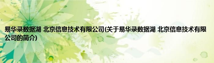 本文关于易华录数据湖 北京信息技术有限公司的简介就讲解完毕,希望对大家有所帮助。