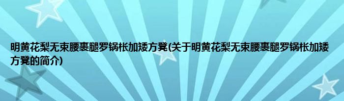 本文关于明黄花梨无束腰裹腿罗锅枨加矮方凳的简介就讲解完毕,希望对大家有所帮助。