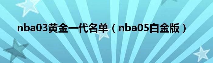 大家好,小问来为大家解答以上问题。nba03黄金一代名单,nba05白金版这个很多人还不知道,现在让我们一起来看看吧!