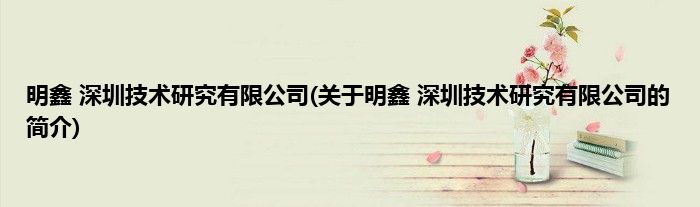 大家好,明鑫 深圳技术研究有限公司,关于明鑫 深圳技术研究有限公司的简介很多人还不知道,现在让我们一起来看看吧!