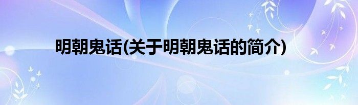 大家好,明朝鬼话,关于明朝鬼话的简介很多人还不知道,现在让我们一起来看看吧!
