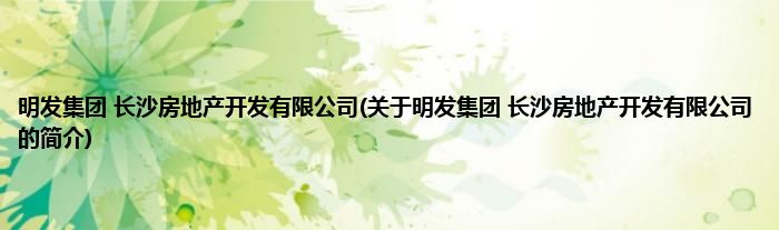 明发集团 长沙房地产开发有限公司(关于明发集团 长沙房地产开发有限公司的简介)