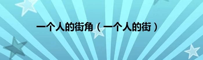 大家好,小问来为大家解答以上问题。一个人的街角,一个人的街这个很多人还不知道,现在让我们一起来看看吧!