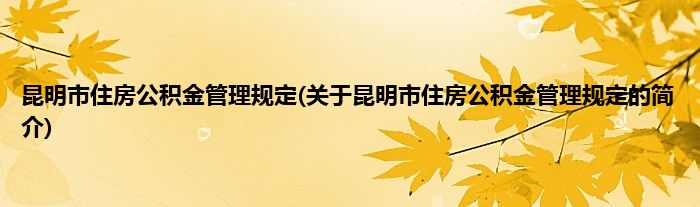 本文关于昆明市住房公积金管理规定的简介就讲解完毕,希望对大家有所帮助。