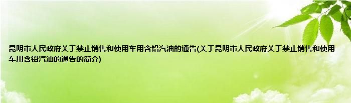 本文关于昆明市人民政府关于禁止销售和使用车用含铅汽油的通告的简介就讲解完毕,希望对大家有所帮助。