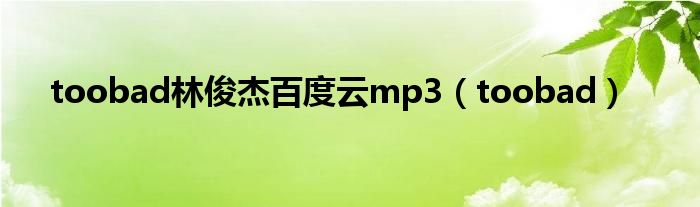 大家好,小问来为大家解答以上问题。toobad林俊杰百度云mp3,toobad这个很多人还不知道,现在让我们一起来看看吧!