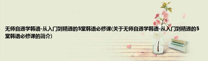 本文关于无师自通学韩语-从入门到精通的5堂韩语必修课的简介就讲解完毕,希望对大家有所帮助。