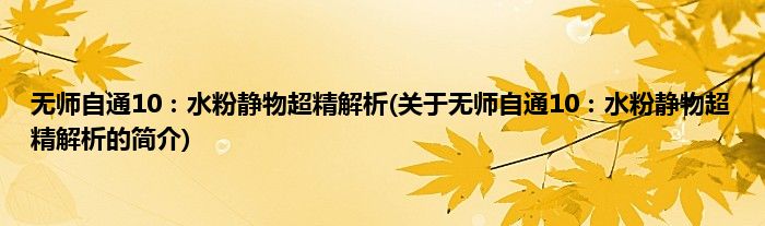 本文关于无师自通10:水粉静物超精解析的简介就讲解完毕,希望对大家有所帮助。