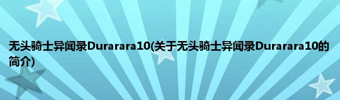 本文关于无头骑士异闻录Durarara10的简介就讲解完毕,希望对大家有所帮助。