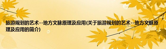 本文关于旅游规划的艺术--地方文脉原理及应用的简介就讲解完毕,希望对大家有所帮助。