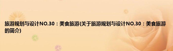 1、 《旅游规划与设计NO.30:美食旅游》是2019年中国建筑工业出版社出版的图书。