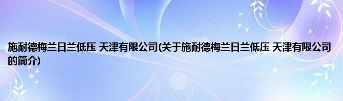 本文关于施耐德梅兰日兰低压 天津有限公司的简介就讲解完毕,希望对大家有所帮助。
