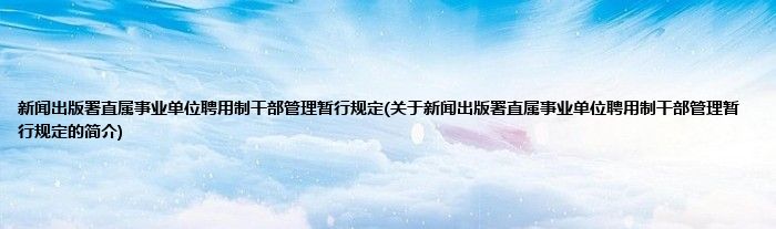 大家好,新闻出版署直属事业单位聘用制干部管理暂行规定,关于新闻出版署直属事业单位聘用制干部管理暂行规定的简介很多人还不知道,现在让我们一起来看看吧!