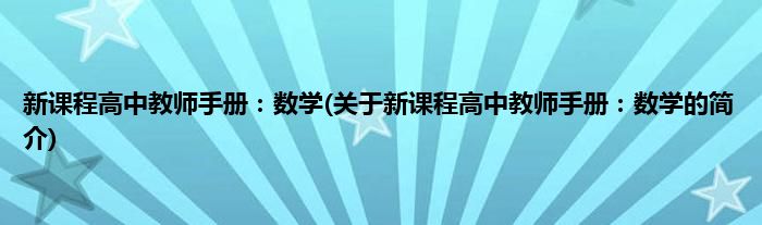 本文关于新课程高中教师手册:数学的简介就讲解完毕,希望对大家有所帮助。