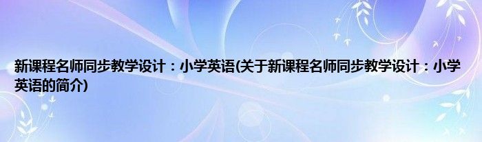 大家好,新课程名师同步教学设计:小学英语,关于新课程名师同步教学设计:小学英语的简介很多人还不知道,现在让我们一起来看看吧!