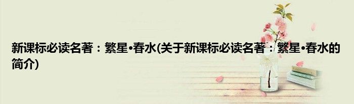 本文关于新课标必读名著:繁星·春水的简介就讲解完毕,希望对大家有所帮助。
