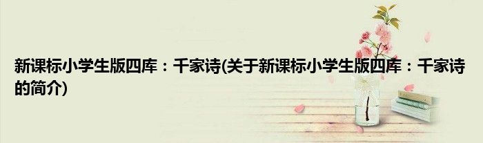 本文关于新课标小学生版四库:千家诗的简介就讲解完毕,希望对大家有所帮助。