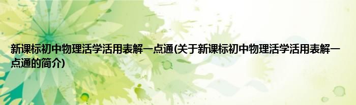 本文关于新课标初中物理活学活用表解一点通的简介就讲解完毕,希望对大家有所帮助。
