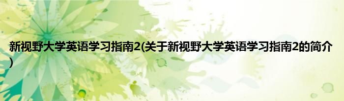 1、 《新视野大学英语学习指南2》是l>2、 。本文关于新视野大学英语学习指南2的简介就讲解完毕,希望对大家有所帮助。