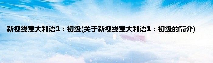本文关于新视线意大利语1:初级的简介就讲解完毕,希望对大家有所帮助。