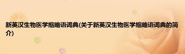 本文关于新英汉生物医学缩略语词典的简介就讲解完毕,希望对大家有所帮助。