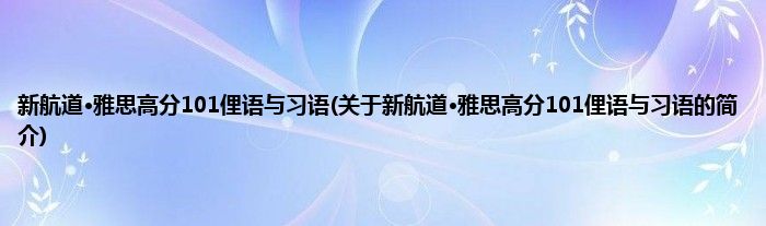 本文关于新航道·雅思高分101俚语与习语的简介就讲解完毕,希望对大家有所帮助。