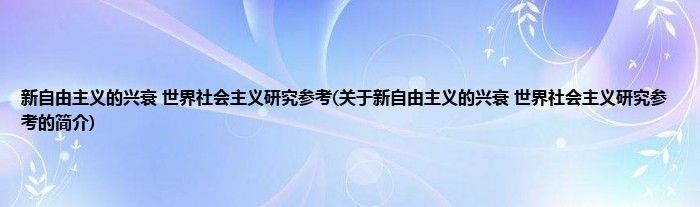 本文关于新自由主义的兴衰 世界社会主义研究参考的简介就讲解完毕,希望对大家有所帮助。