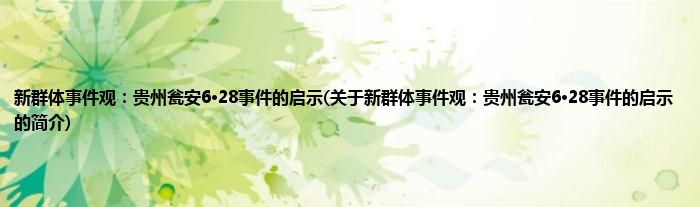 本文关于新群体事件观:贵州瓮安6·28事件的启示的简介就讲解完毕,希望对大家有所帮助。