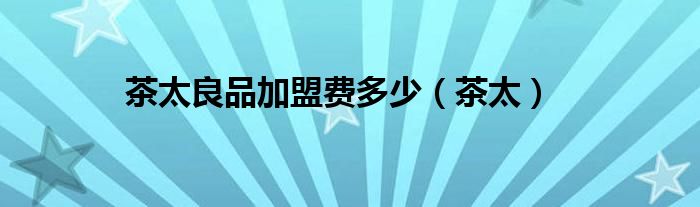 以上就是【茶太良品加盟费多少,茶太】相关内容。