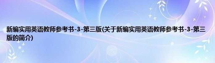 本文关于新编实用英语教师参考书-3-第三版的简介就讲解完毕,希望对大家有所帮助。